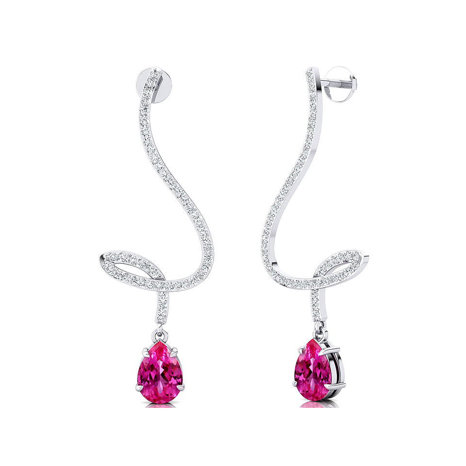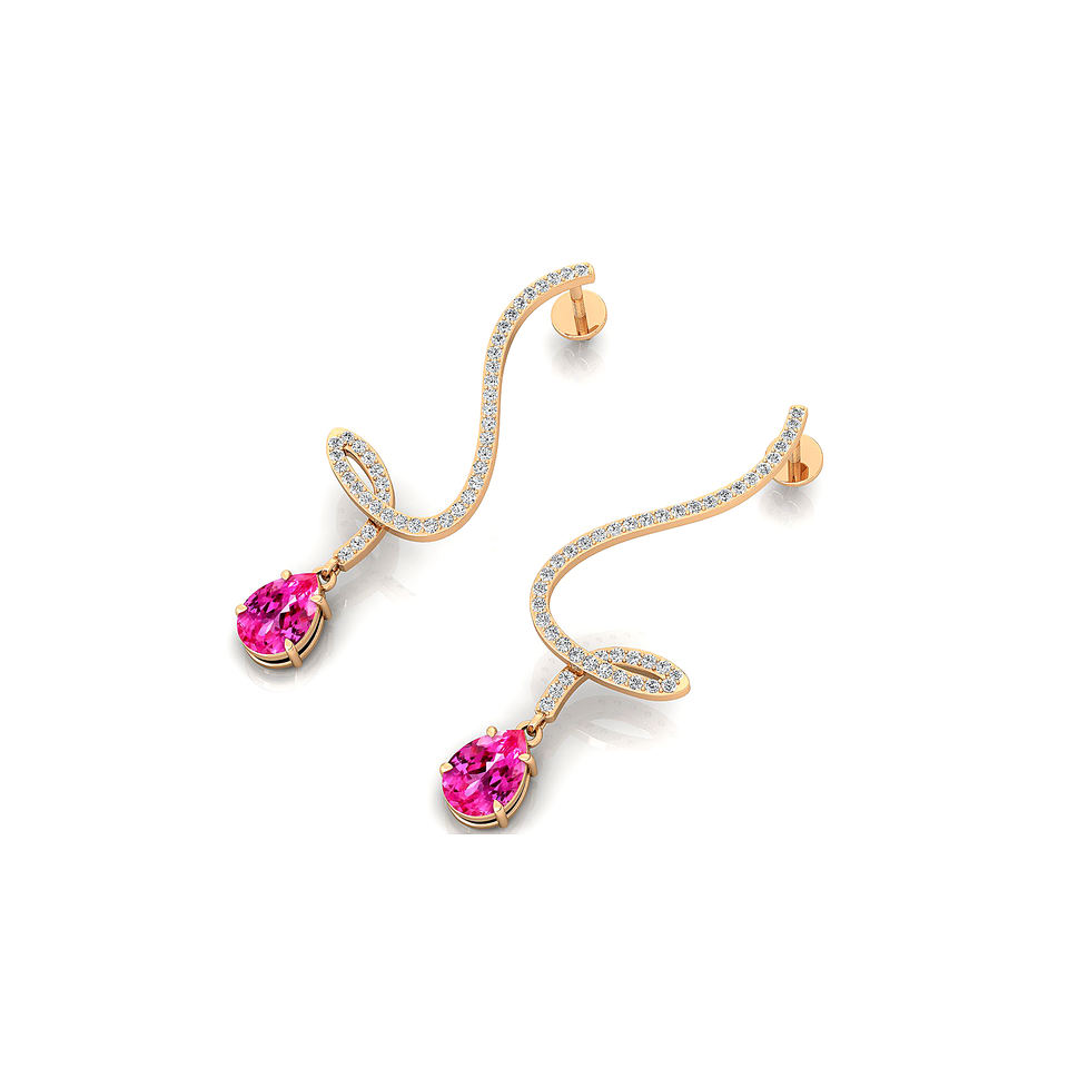 ต่างหูแบบคลาสสิก ทองคำแท้ 18K ประดับพลอยแซฟไฟร์สีชมพูสังเคราะห์และเพชรแท้ ดีไซน์ทันสมัย เหมาะเป็นของขวัญวันเกิดหรือของขวัญแต่งงาน ชุบโรเดียม