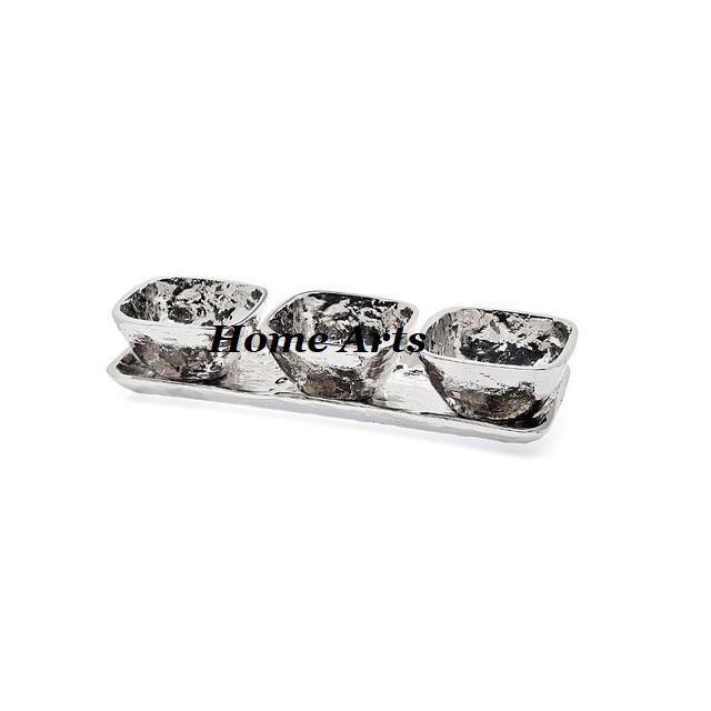 Classic Design Aluminium Nuts Server With Wooden Tray High Quality Nuts Server For Home Hotel Restaurant Usage