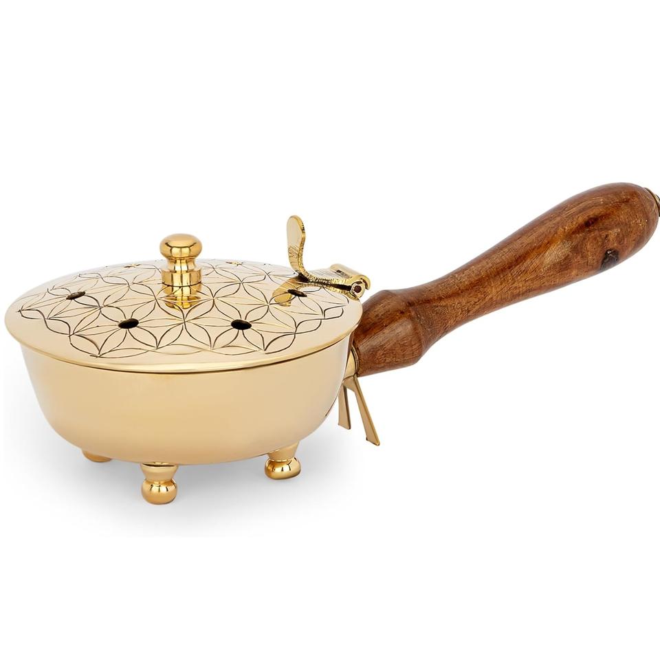 การออกแบบคลาสสิกทองเหลืองธูปBurner Burningธูปอุ่นน้ําหอมBurnerพร้อมที่จับไม้สําหรับตกแต่งบ้าน