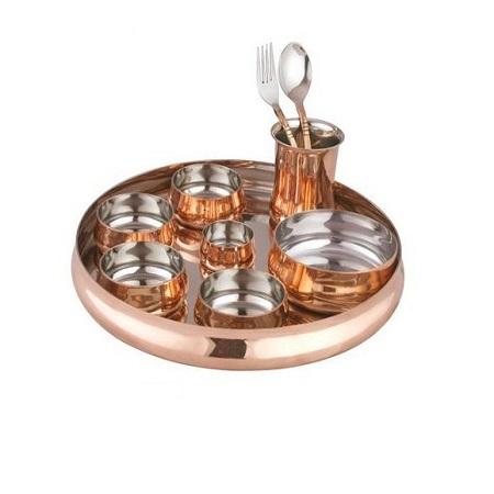 ชุดถาดอาหารแบบคลาสสิก ดีไซน์เป็นมิตรกับสิ่งแวดล้อม ทำจากเหล็กตีขึ้นรูป สีทองแดงและสีเงิน ประกอบด้วย 4 ชาม 1 ช้อน 1 แก้ว 1 ถาด