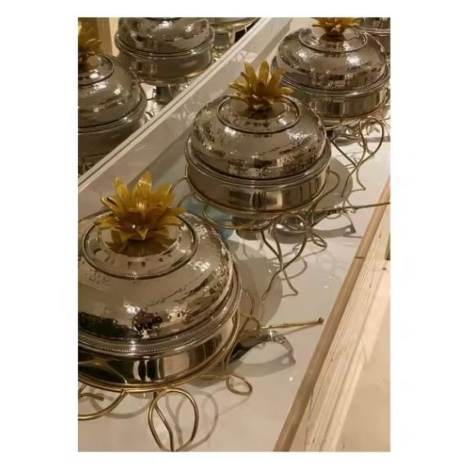 จาน Chaffing อาหารเย็นดีไซน์คลาสสิกทําจากจาน Chaffing สแตนเลสบุฟเฟ่ต์แสดงโดยโลกโลหะอินเดีย