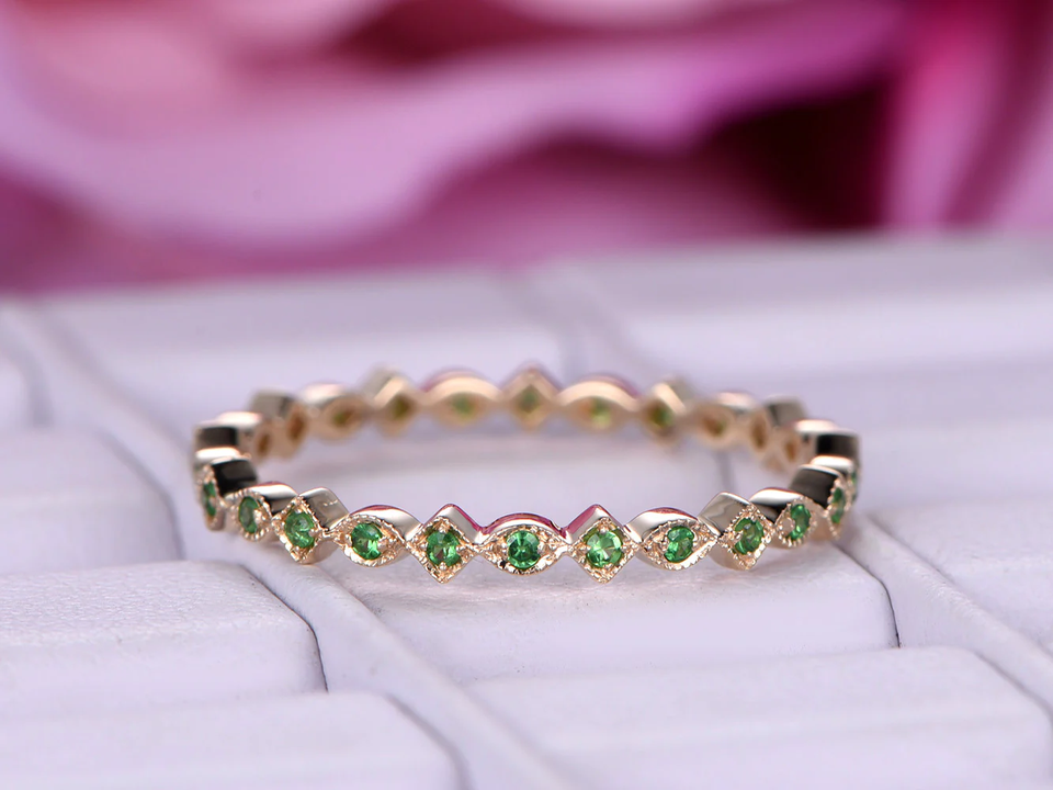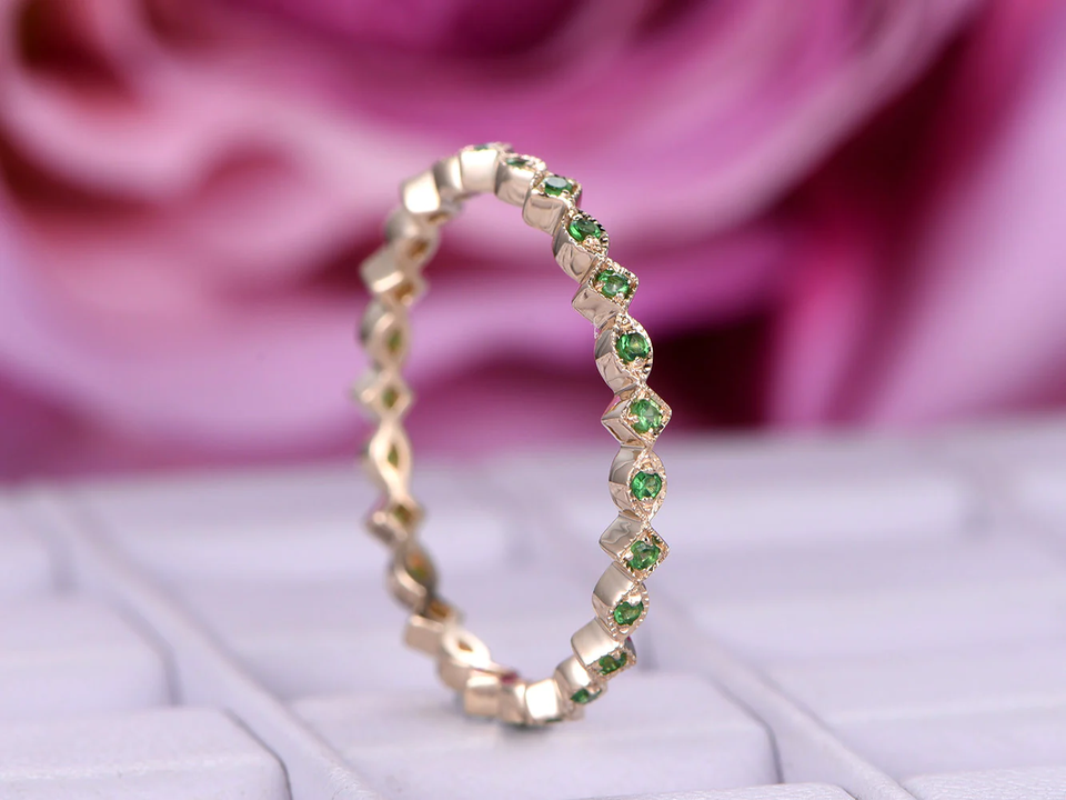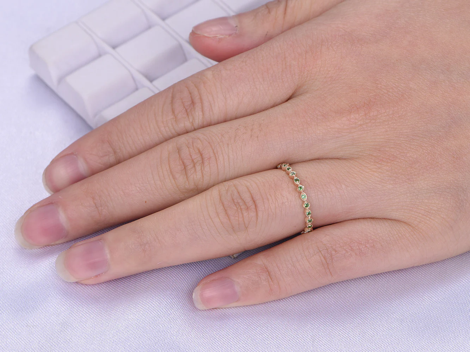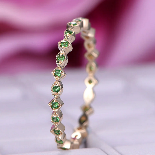 แหวนเพทายสีเขียวประดับโรสโกลด์ดีไซน์คลาสสิกแหวนหมั้นแบบมินิมอลสำหรับงานแต่งงานแหวนเครื่องประดับแฟชั่นสำหรับงานเลี้ยงขายส่ง