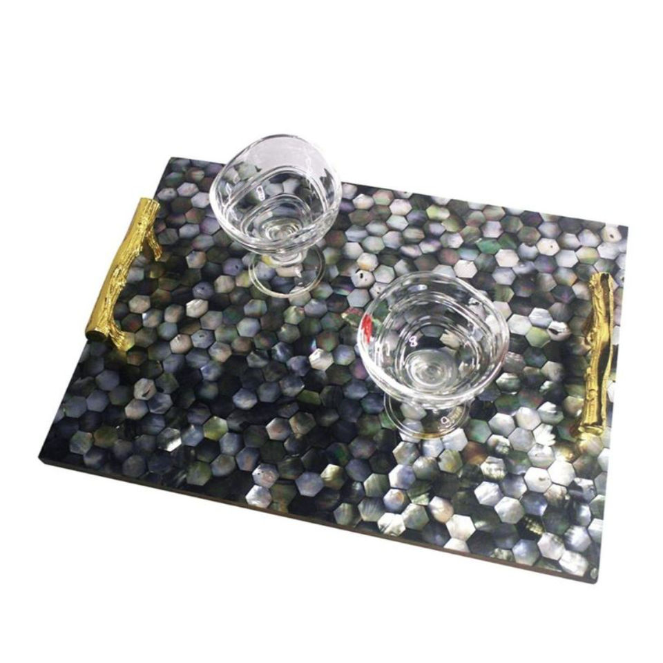 การออกแบบคลาสสิกตกแต่งบ้านแม่ของถาดเสิร์ฟมุกด้วยด้ามจับเงินที่ขายดีที่สุดถาดตกแต่งโต๊ะ