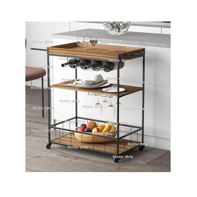 รถเข็นสำหรับเสิร์ฟอาหารดีไซน์ยอดเยี่ยมมีล้อทำจากไม้และเหล็ก