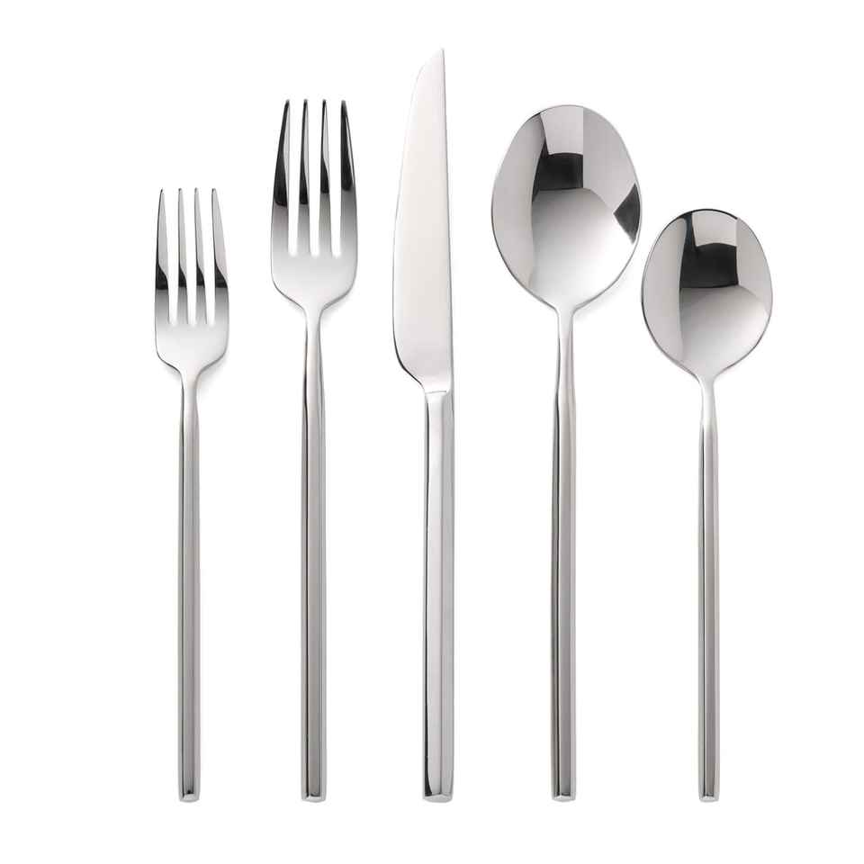 ชุดช้อนส้อมสแตนเลสชุบเงินดีไซน์คลาสสิก ผิวเงา ทันสมัย ใช้กับเครื่องล้างจานได้ ชุดช้อนส้อม 5 ชิ้น