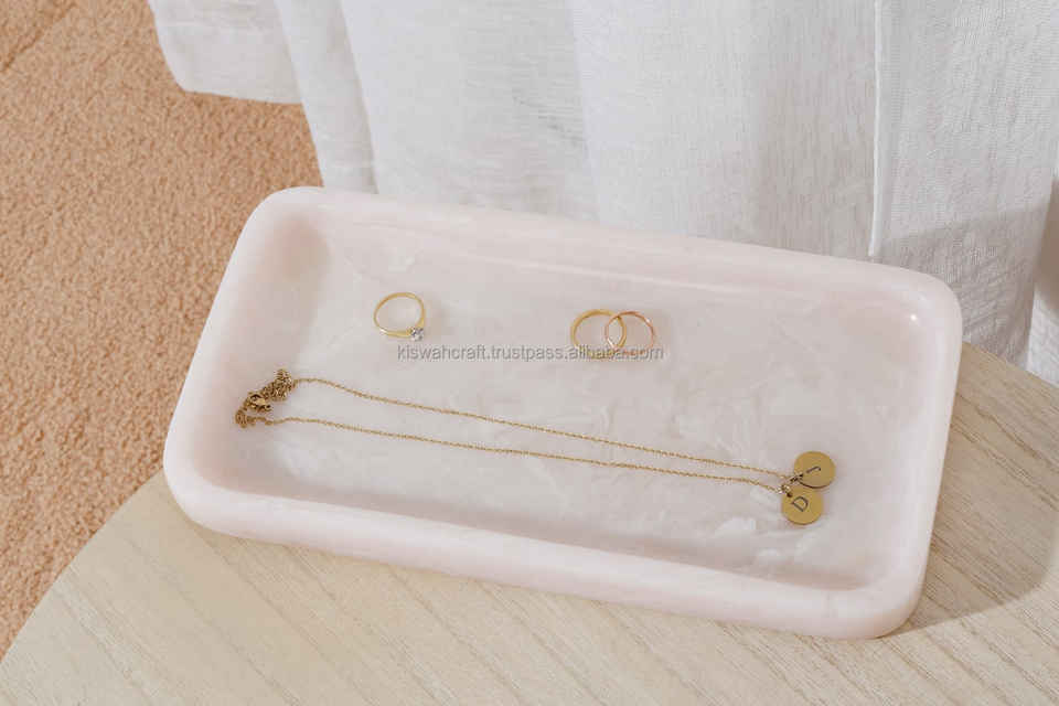 ถาดรองชามขนาดเล็กแกะสลักด้วยมือทำจากเรซินธรรมชาติดีไซน์คลาสสิกสีขาวมาตรฐานสำหรับห้องครัวและงานปาร์ตี้