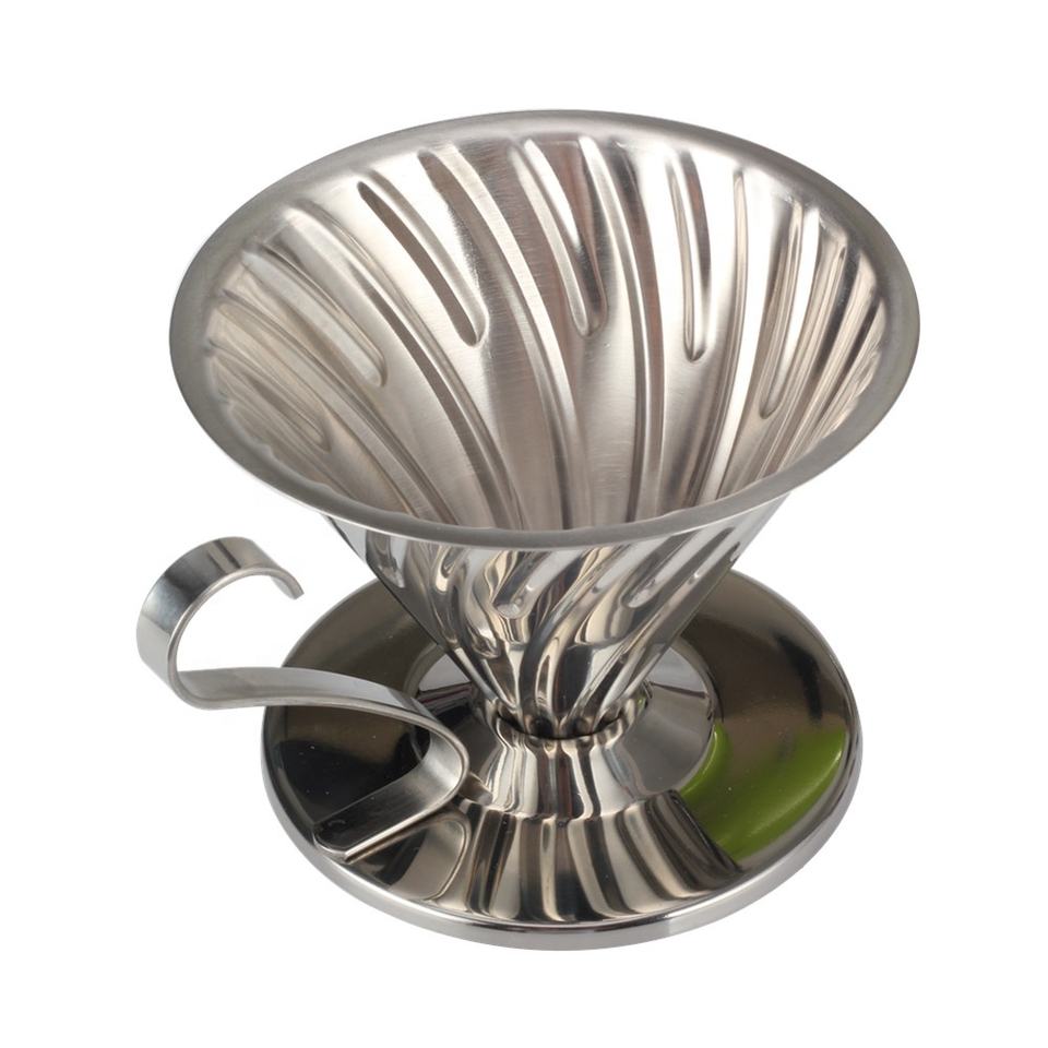ที่วางแก้วกันลื่นดีไซน์คลาสสิก พร้อมที่กรองกาแฟแบบมีหูจับ ทำจากสแตนเลสสตีล