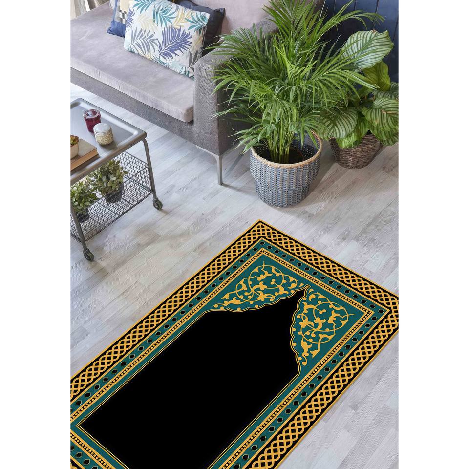 พรมพิมพ์ลายดีไซน์คลาสสิก: พรมละหมาดมุสลิมแบบกันลื่น ดีไซน์หรูหรา พร้อมพรมขนนุ่ม