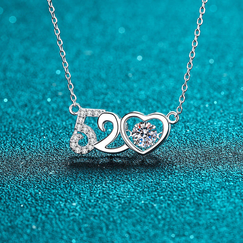 จี้520เพชรโมอิสทรงกลม925เงินสเตอร์ลิงแฟชั่นเครื่องประดับสร้อยคอสำหรับผู้หญิงดีไซน์คลาสสิก