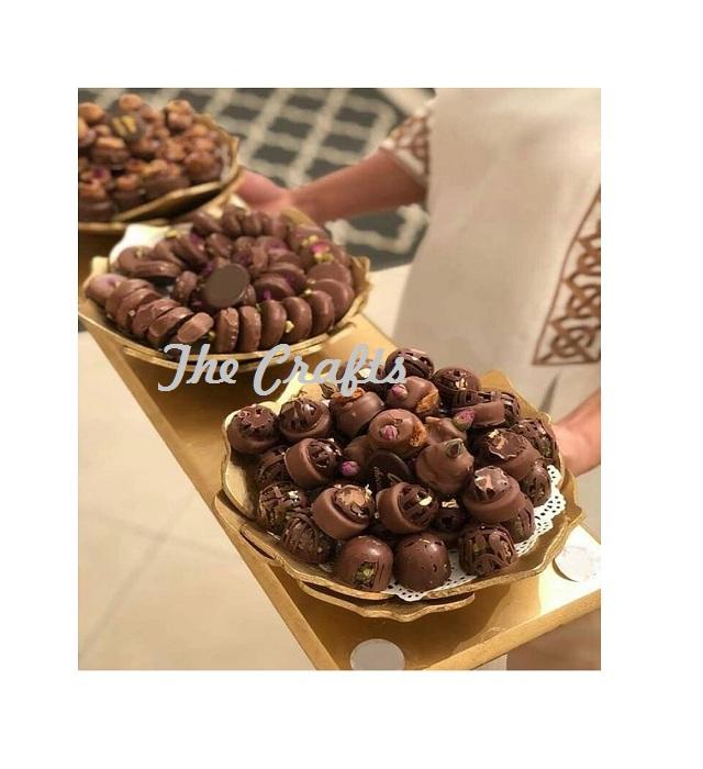 ชามเสิร์ฟของหวานสีทองทองเหลืองพร้อมช็อคโกแลตทรงกลมชามขนม