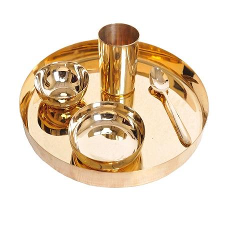 ชุด Thali สีทองทองเหลืองสีทองทรงกลมดีไซน์คลาสสิกชุด Thali 2ชามคุณภาพสูงสำหรับใช้ในร้านอาหาร
