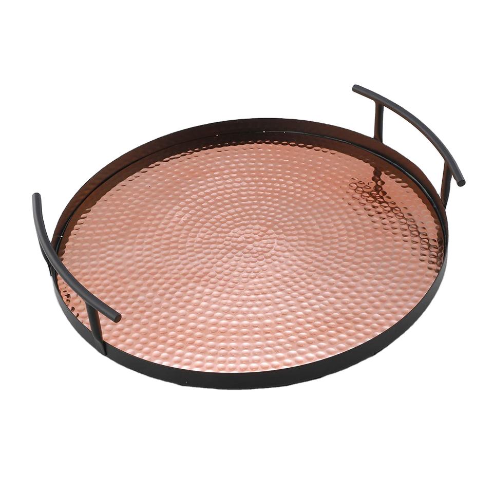ถาดเสิร์ฟดีไซน์คลาสสิกถาดเสิร์ฟโลหะชุบทองแดงโค้งมนพร้อมที่จับด้านข้างงานแต่งงานใช้โดยอินเดีย