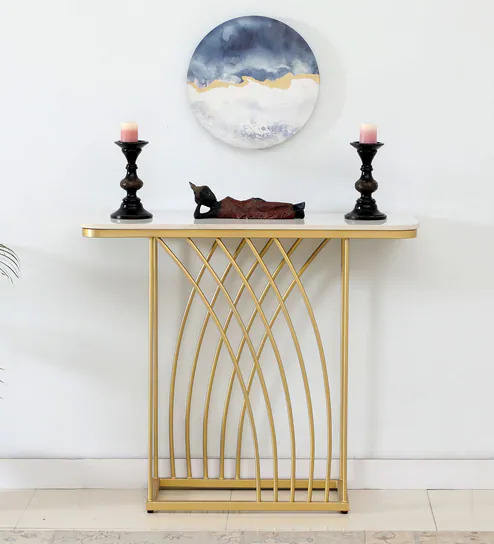 การออกแบบคลาสสิกสูงโต๊ะคอนโซลหินอ่อนโลหะกรอบทองสําหรับตกแต่งห้องนั่งเล่น Handmade คอนโซลตาราง