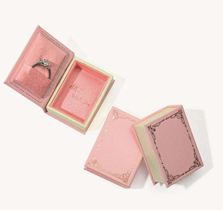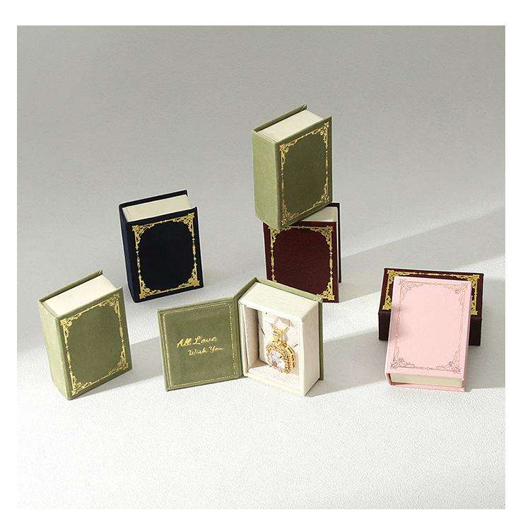 กล่องเครื่องประดับแบบพกพากล่องแหวนทรงหนังสือเครื่องประดับวินเทจเรีไซน์คลาสสิกพิมพ์โลโก้ตามสั่ง