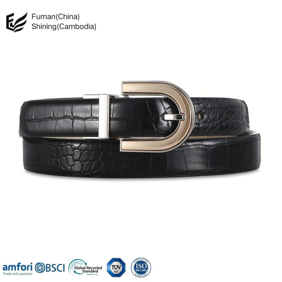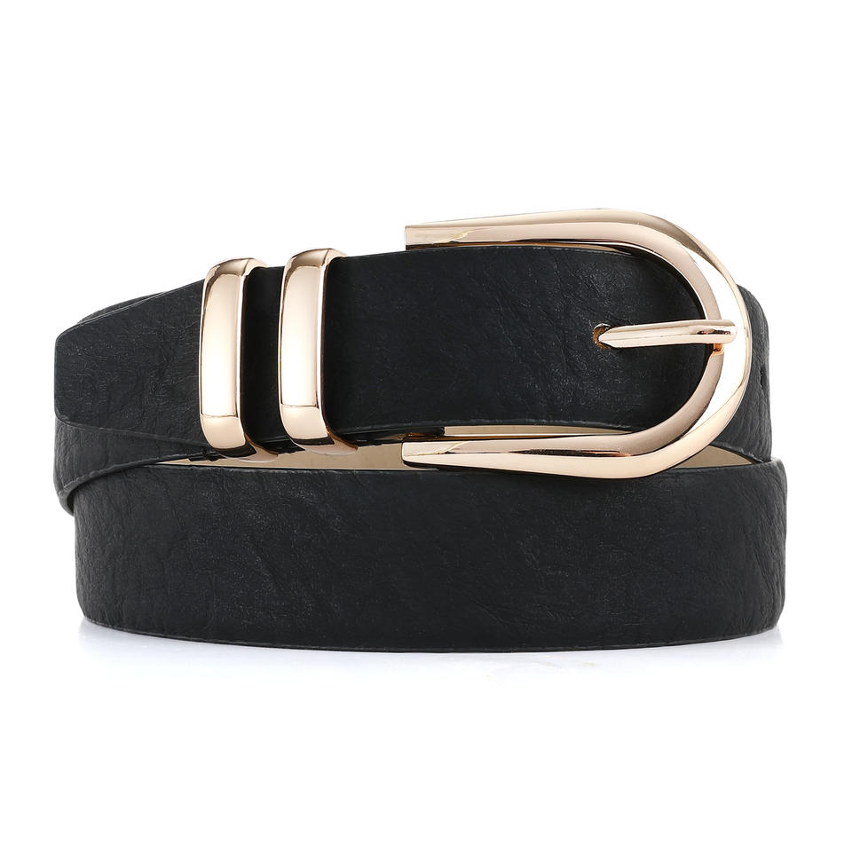 เข็มขัดหนัง PU แบบผอมของผู้หญิงสีดำสไตล์คลาสสิกหัวเข็มขัดแบบกลัดลำลองหัวเข็มขัดโรงงานสำหรับชุดกางเกงยีนส์ผลิตในกัมพูชา