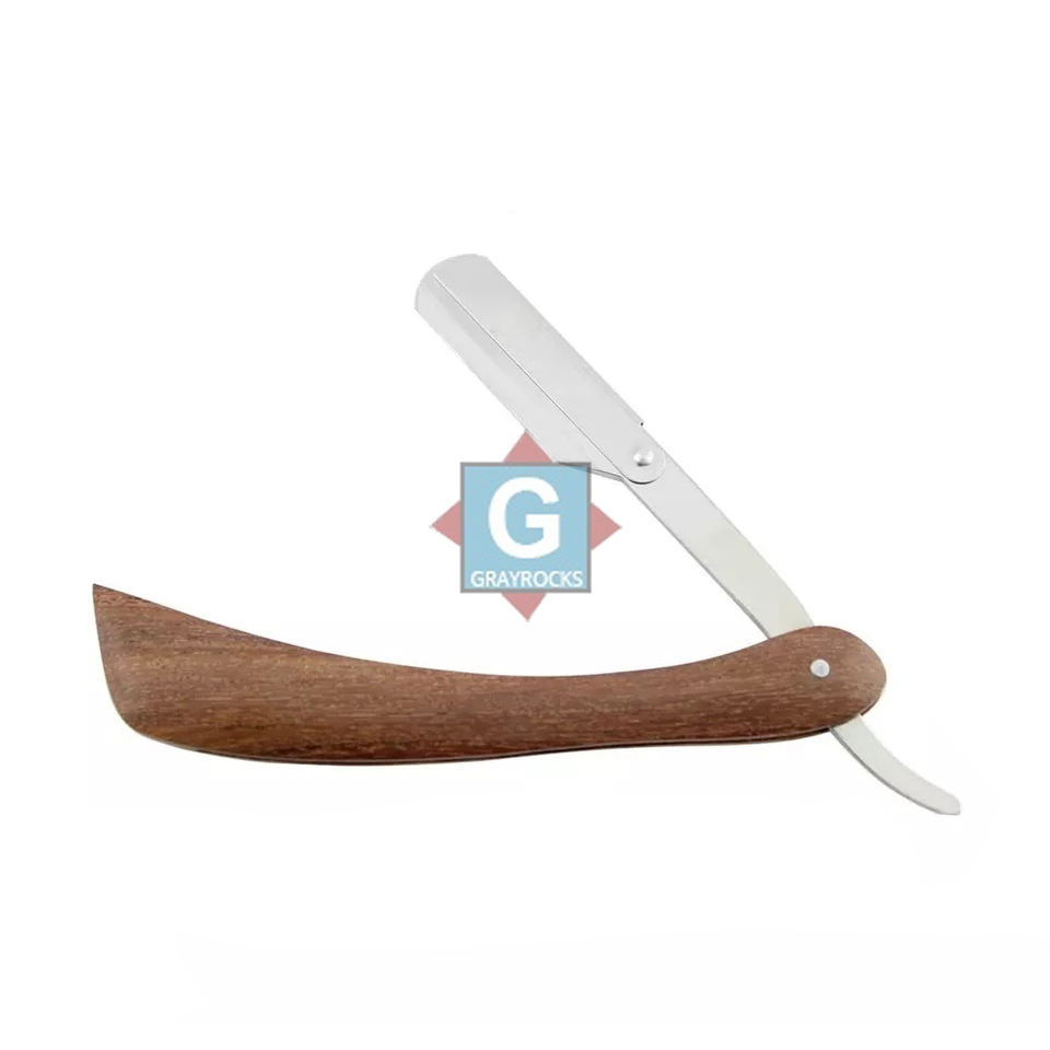 มีดโกนหนวดดีไซน์คลาสสิก ด้ามไม้ สแตนเลส สำหรับร้านตัดผมและร้านเสริมสวย