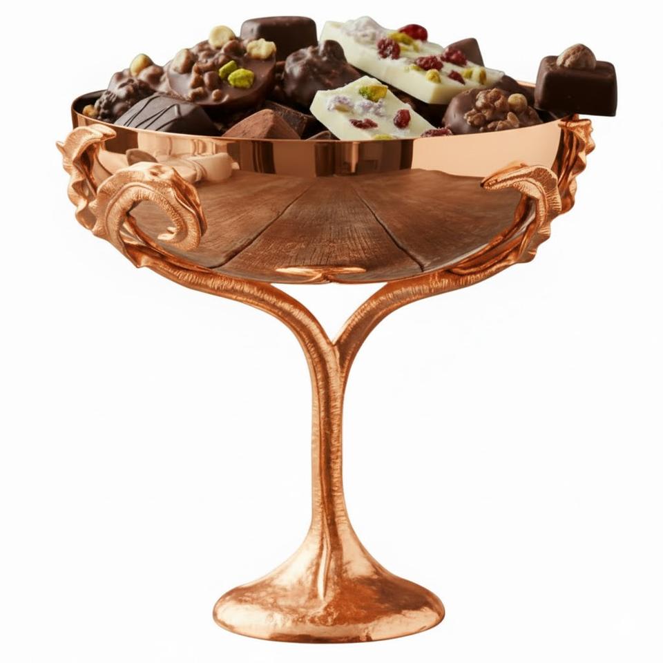 ชามทองแดงตกแต่งดีไซน์คลาสสิกสำหรับเสิร์ฟขนมหวาน ช็อกโกแลต เหมาะสำหรับโอกาสพิเศษ ของขวัญ และงานอีเว้นท์ ราคาถูกที่สุด