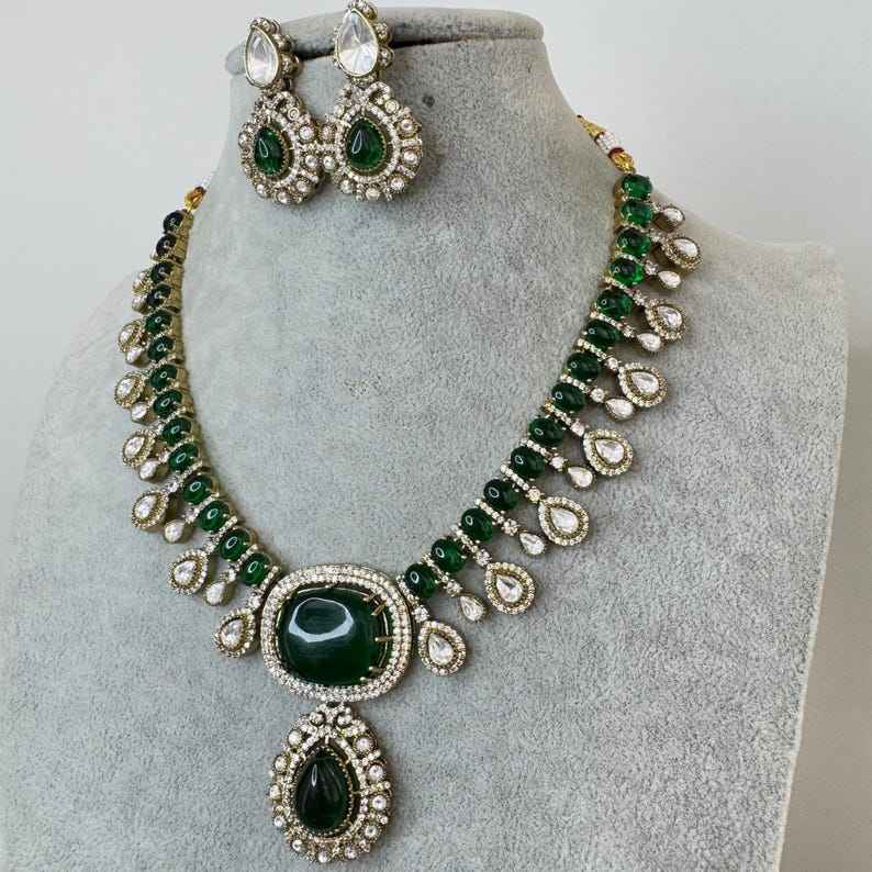 คีย์เวิร์ด:สร้อยคอ kundan polki สีเขียวมรกตสร้อยคอดีไซเนอร์ดัง