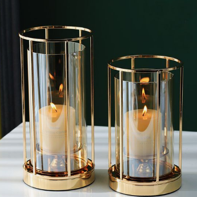 เชิงเทียนโลหะเฮอร์ริเคนดีไซน์คลาสสิกที่วางเทียนทำด้วยมือตั้งโต๊ะสำหรับตกแต่งบ้านในห้อง