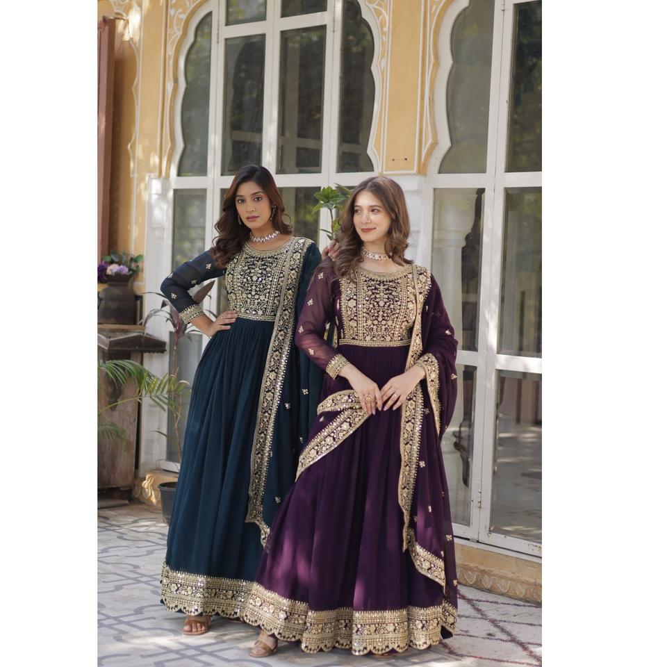 ชุดราตรีงานปักลายลูกไม้ขอบกระจกประดับด้วยงานปักดิ้นทองและเลื่อมสไตล์อินเดีย ดีไซน์คลาสสิก ราคาไม่แพง