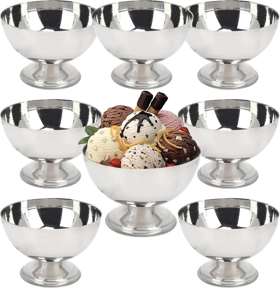 ชามไอศกรีมโลหะแบบคลาสสิกพร้อมช้อนสแตนเลส