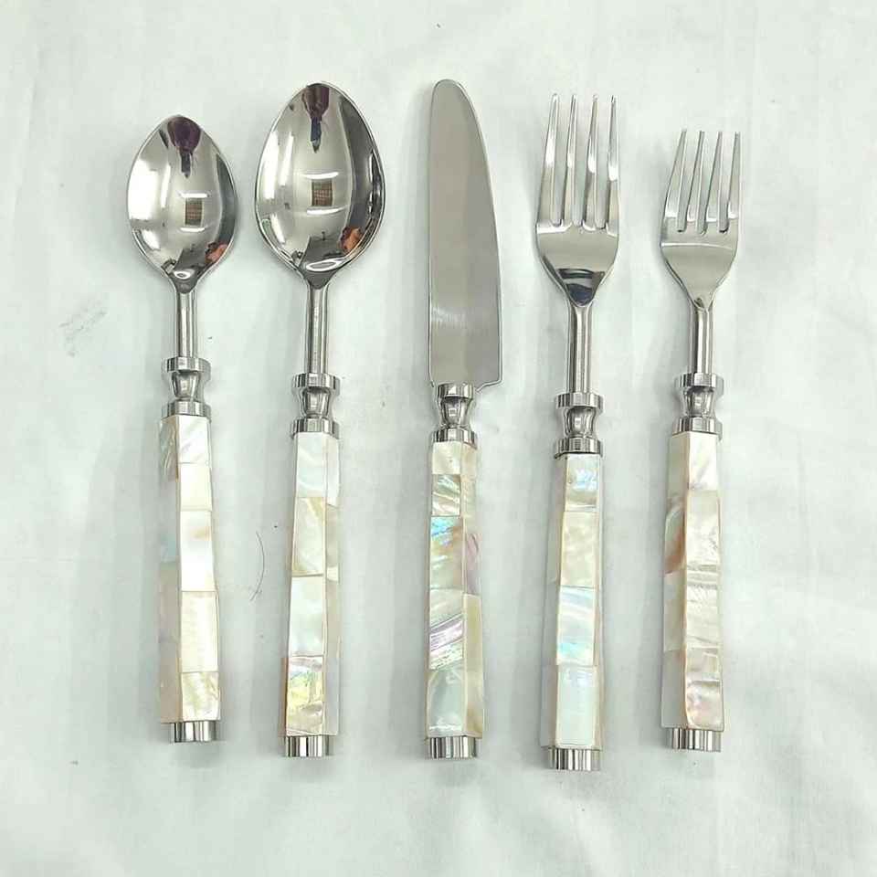 ชุดส้อมรับประทานอาหารแบบคลาสสิกพร้อมหัวเหล็กที่ทนทานและด้ามจับทำจากไม้และมุกสำหรับใช้ในบ้านและโรงแรม