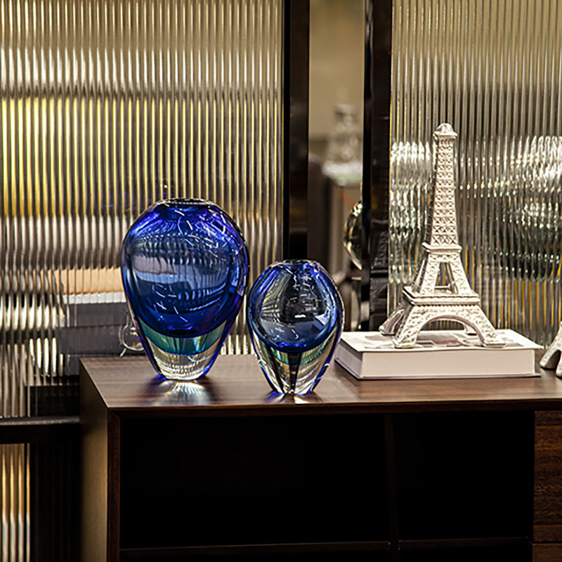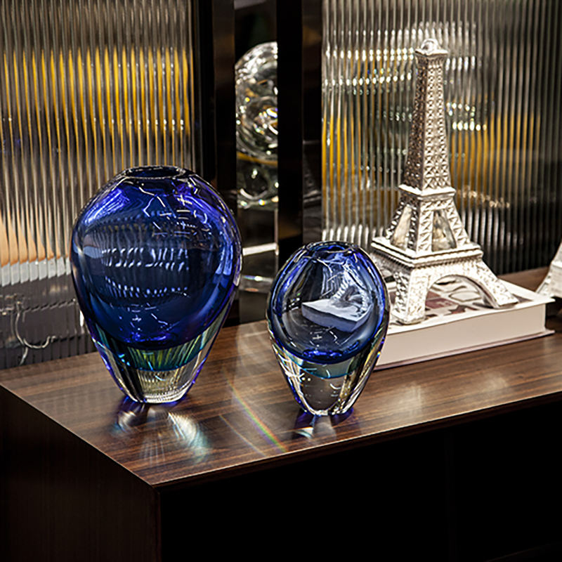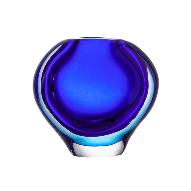 แจกันดอกไม้แก้วขนาดใหญ่สีฟ้าลึกแบบคลาสสิกสำหรับงานแต่งงาน