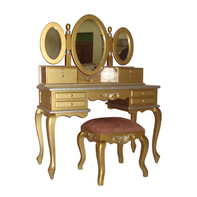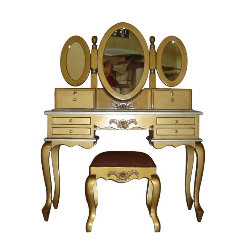โต๊ะเครื่องแป้งแบบคลาสสิกพร้อมเก้าอี้สตูลชุดโต๊ะเครื่องแป้งทาสีทองพร้อมโต๊ะแต่งหน้าแบบออตโตมันสำหรับเฟอร์นิเจอร์บ้านสไตล์ยุโรป