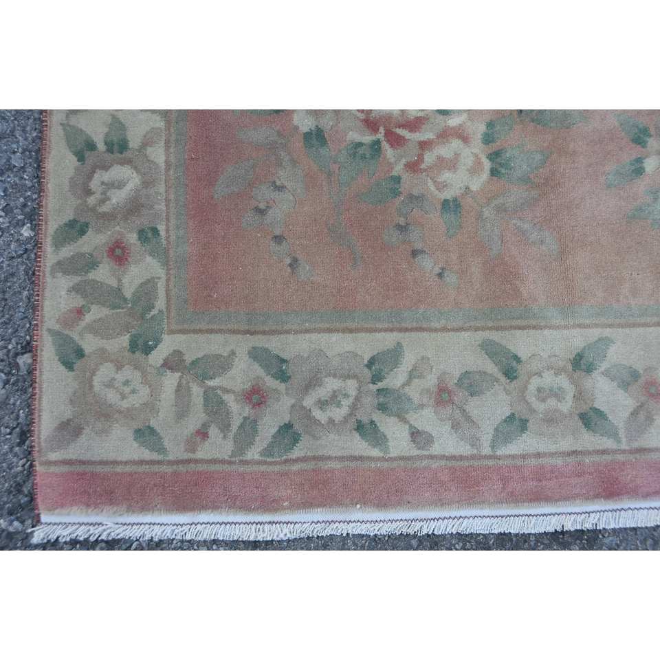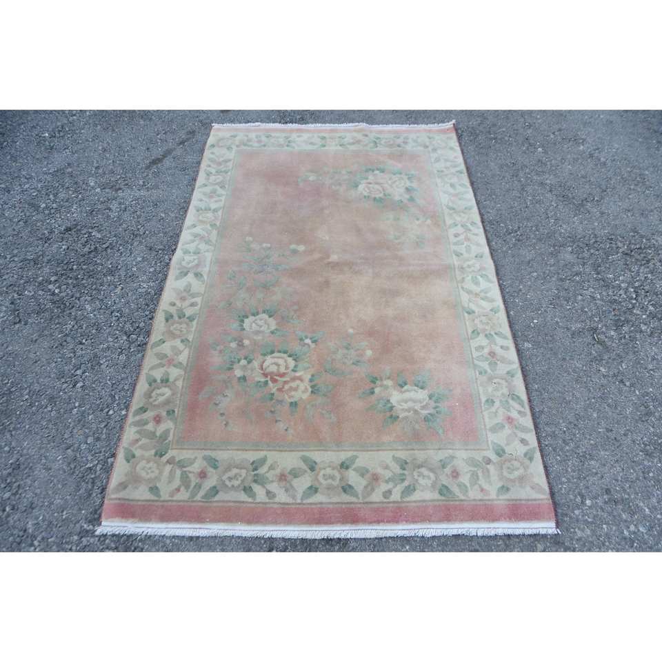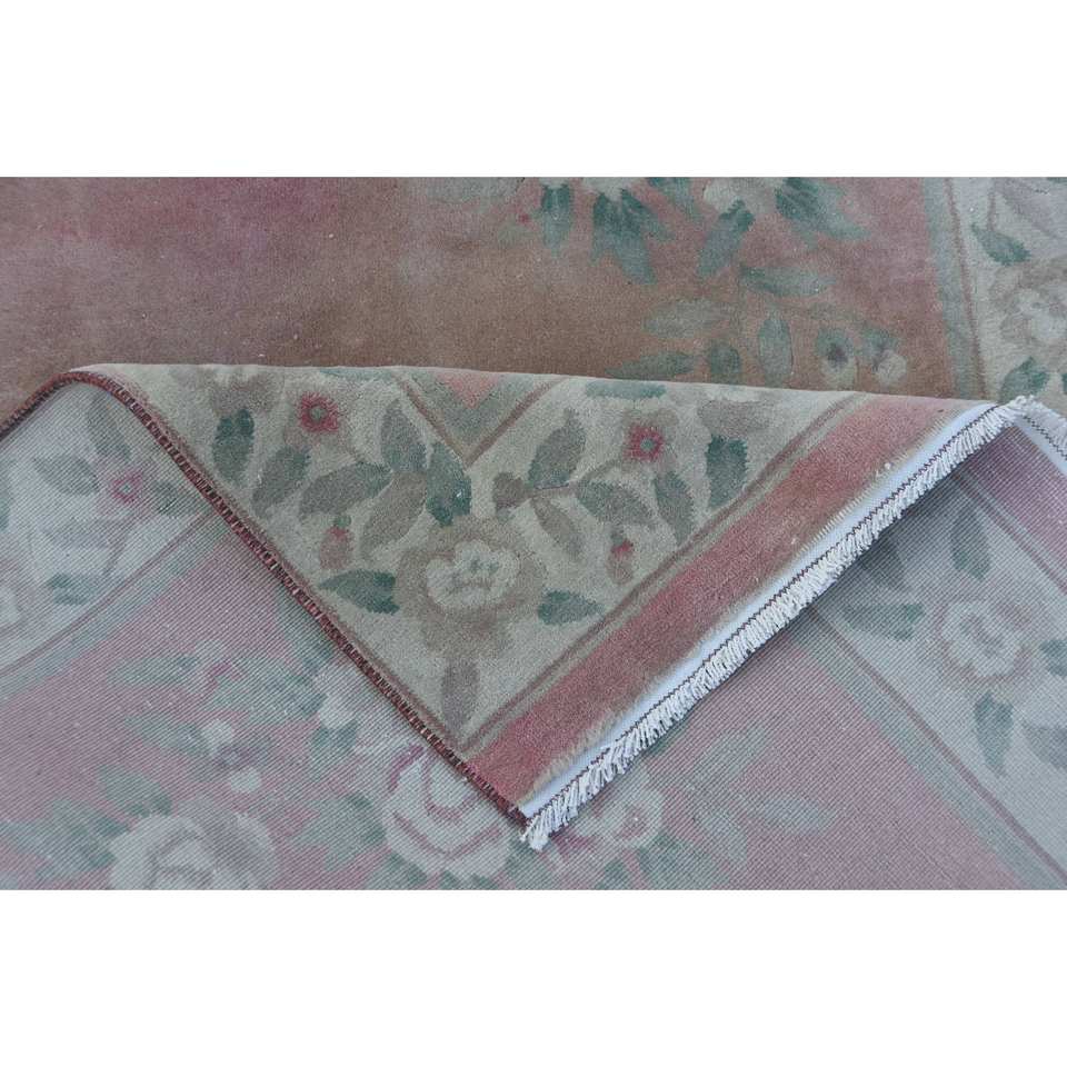 พรมขนสัตว์แบบคลาสสิก ลายปะติดสีชมพูเขียว เป็นมิตรกับสิ่งแวดล้อม ขนาด 3.6 x 5.9 ฟุต ทำด้วยมือจากตุรกี รูปทรงสี่เหลี่ยมผืนผ้าขนาดใหญ่ ขนปานกลาง ใช้ปูพื้นห้องโถงหรือห้องต่างๆ