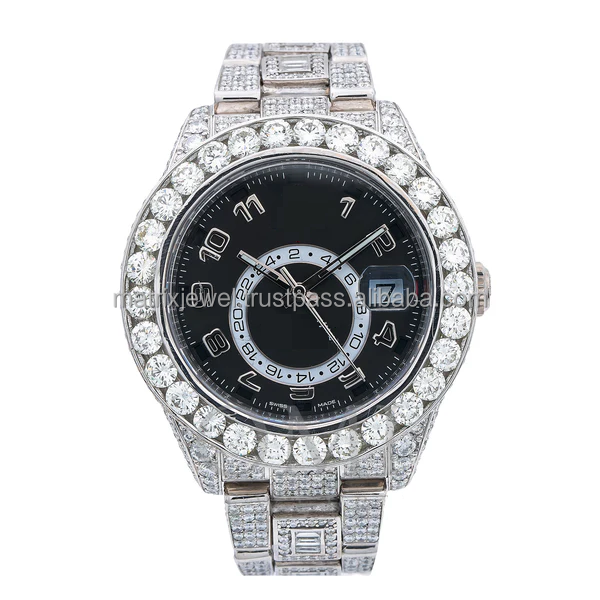 นาฬิกาเพชรหรูหราคลาสสิกคุณภาพสูงทรงมนผลิตจากสเตนเลสสตีลประดับเพชรที่มีความคมชัดของ VVS