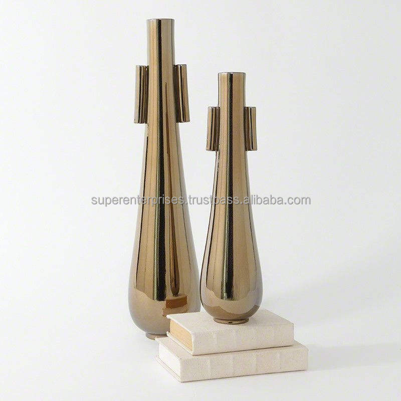 แจกันดอกไม้โลหะสุดคลาสสิกและหรูหราสำหรับตกแต่งบ้านสไตล์ดั้งเดิม โต๊ะห้องนั่งเล่น ตกแต่งภายใน จัดแสดงดอกไม้