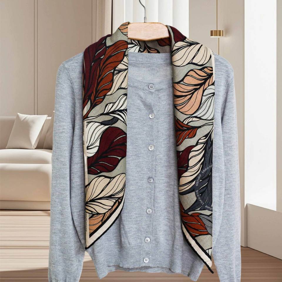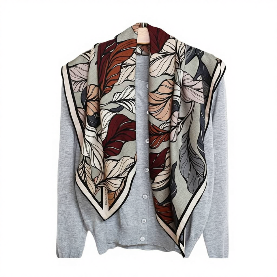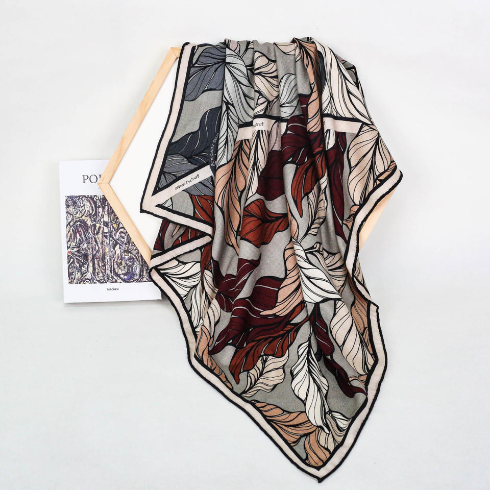 ผ้าคลุมไหล่ไหมมัลเบอร์รี่ลายใบไม้แบบคลาสสิกหรูหรา ผ้าไหมผสมขนสัตว์ 90 ซม. ผ้าพันคอสี่เหลี่ยมขนาดใหญ่สองด้าน สำหรับผู้หญิง ฤดูใบไม้ร่วง ฤดูหนาว อุ่นสบาย