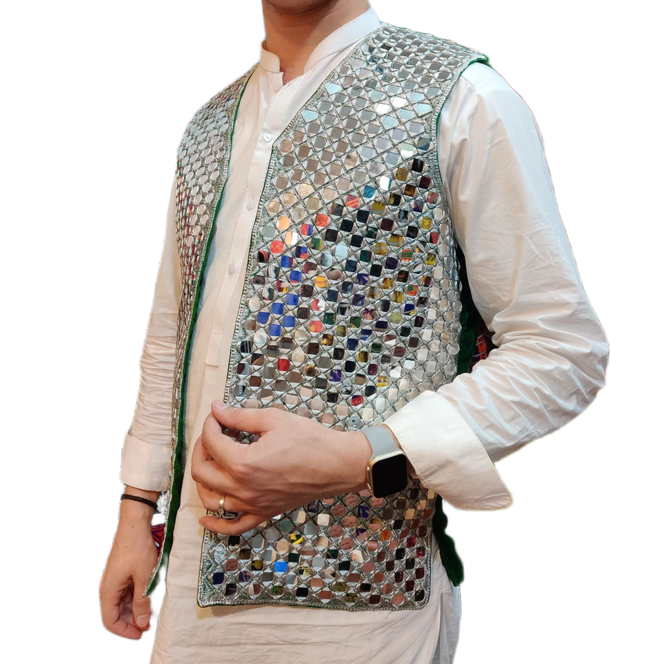 เสื้อกั๊กผู้ชายปักคลาสสิก afghani สำหรับกิจกรรมดั้งเดิมงานแต่งงานทางวัฒนธรรมและงานเฉลิมฉลองชาติพันธุ์ในผ้าพรีเมี่ยม
