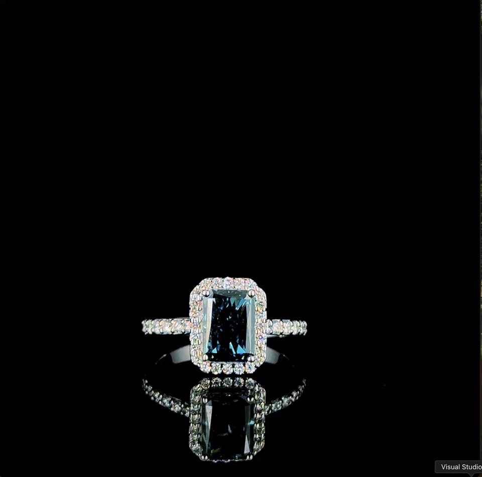 แหวนเพชรทรงคลาสสิคแบบ Emerald Cut ประดับเพชรรอบวง ดีไซน์หรูหราสำหรับผู้หญิง