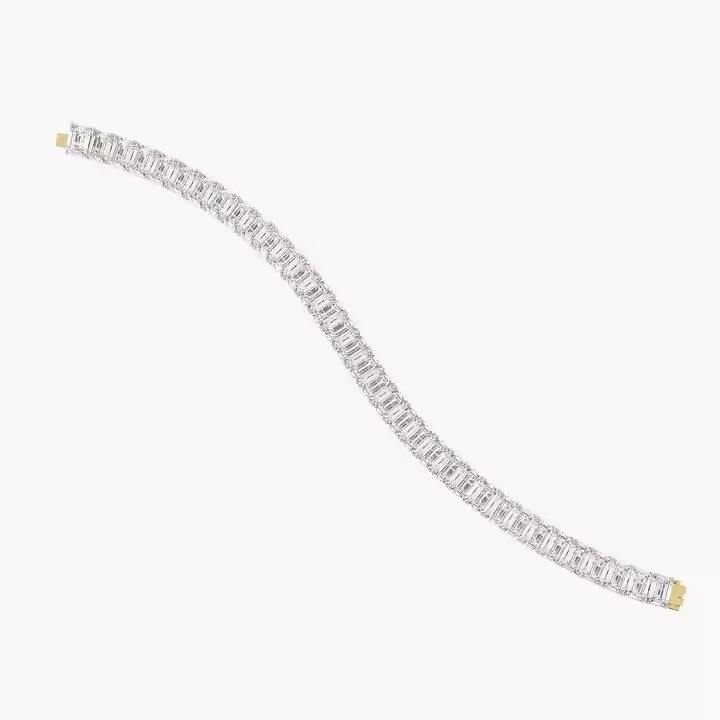 สายรัดข้อมือเทนนิสประดับเพชรสีมรกตคลาสสิกสีทอง18K สีเหลือง/ทองคำขาว