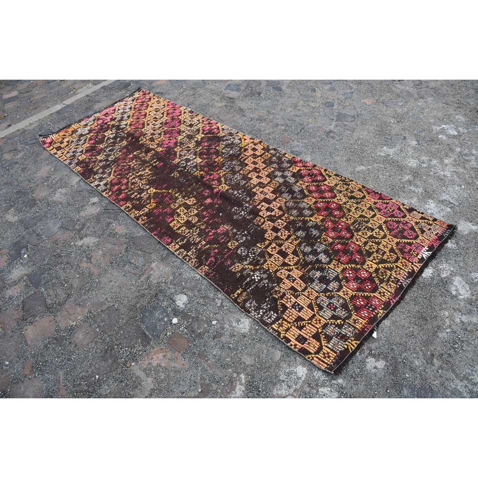 พรมขนแกะสีน้ำตาลสไตล์ชนเผ่าคลาสสิก3.1 x 8.5ft สไตล์ตุรกีมีการออกแบบเย็บปะติดปะต่อกันด้านหลังของยางสำหรับห้องนั่งเล่นห้องโถงสี่เหลี่ยมผืนผ้าลาย