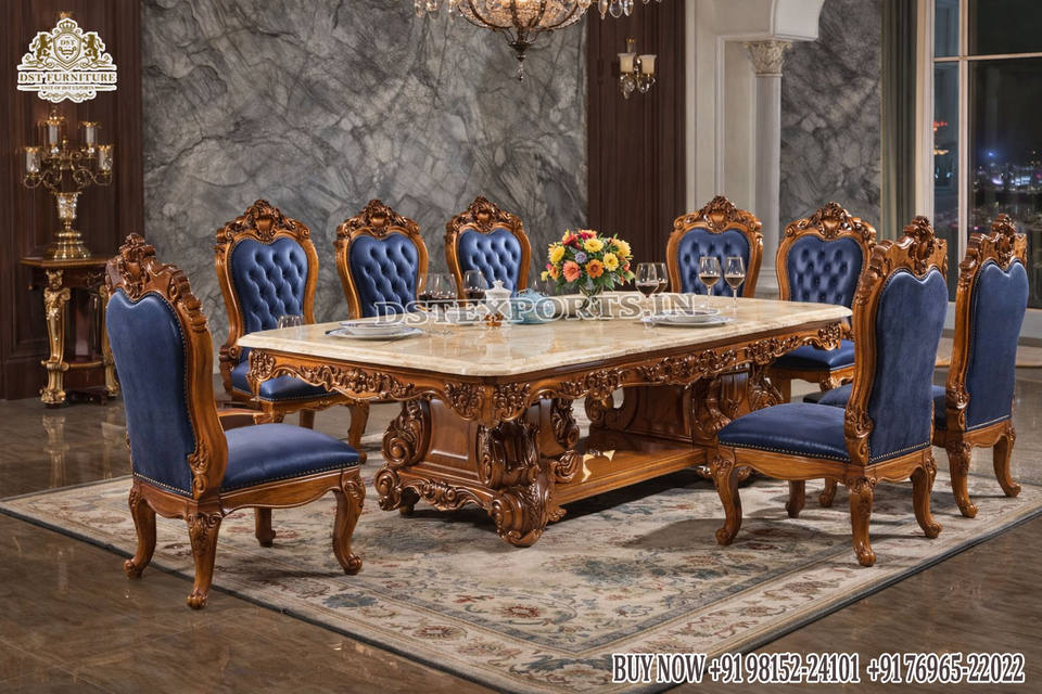 Classic European Style Hand Carved Teak Wood Dining Furniture
