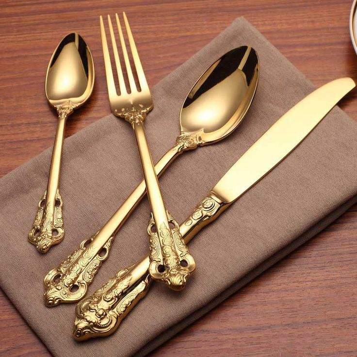 Classic European Style Stainless Metal Cutlery Set For Formal Dinner Table And Hotel Supply