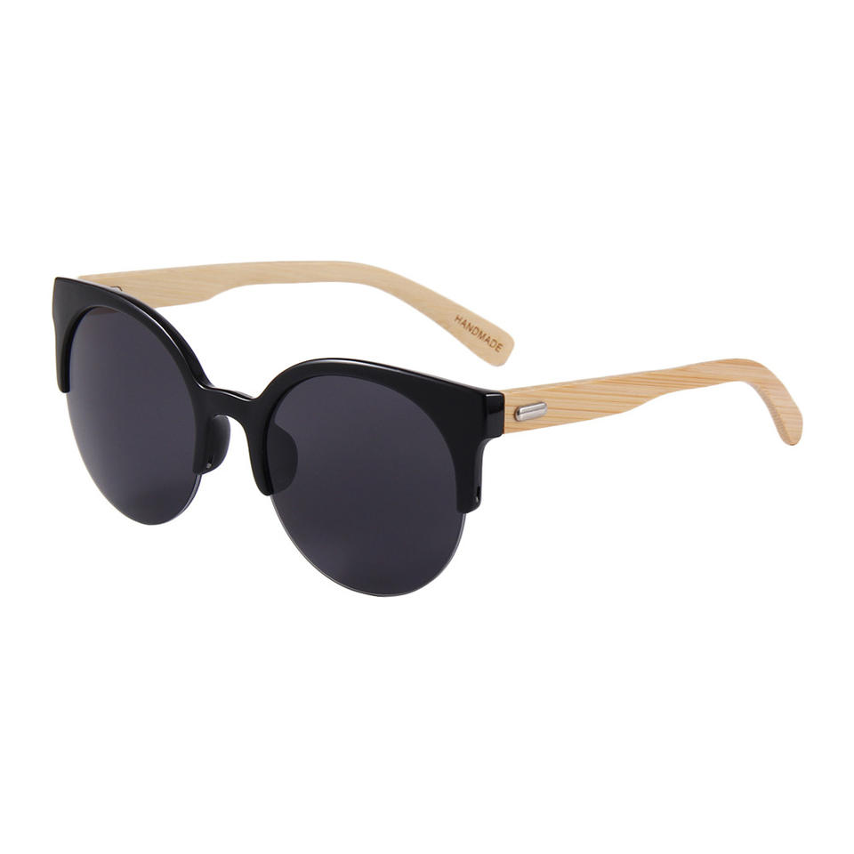 แว่นกันแดดไม้สไตล์ยุโรปคลาสสิก กรอบสีดำ ป้องกันรังสียูวี 400 สำหรับทุกเพศ ขาแว่นไม้ไผ่ เลนส์พีซี