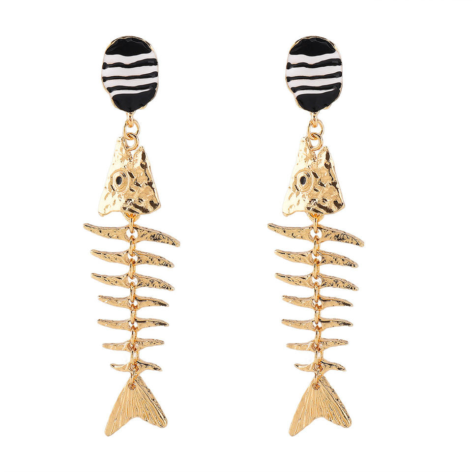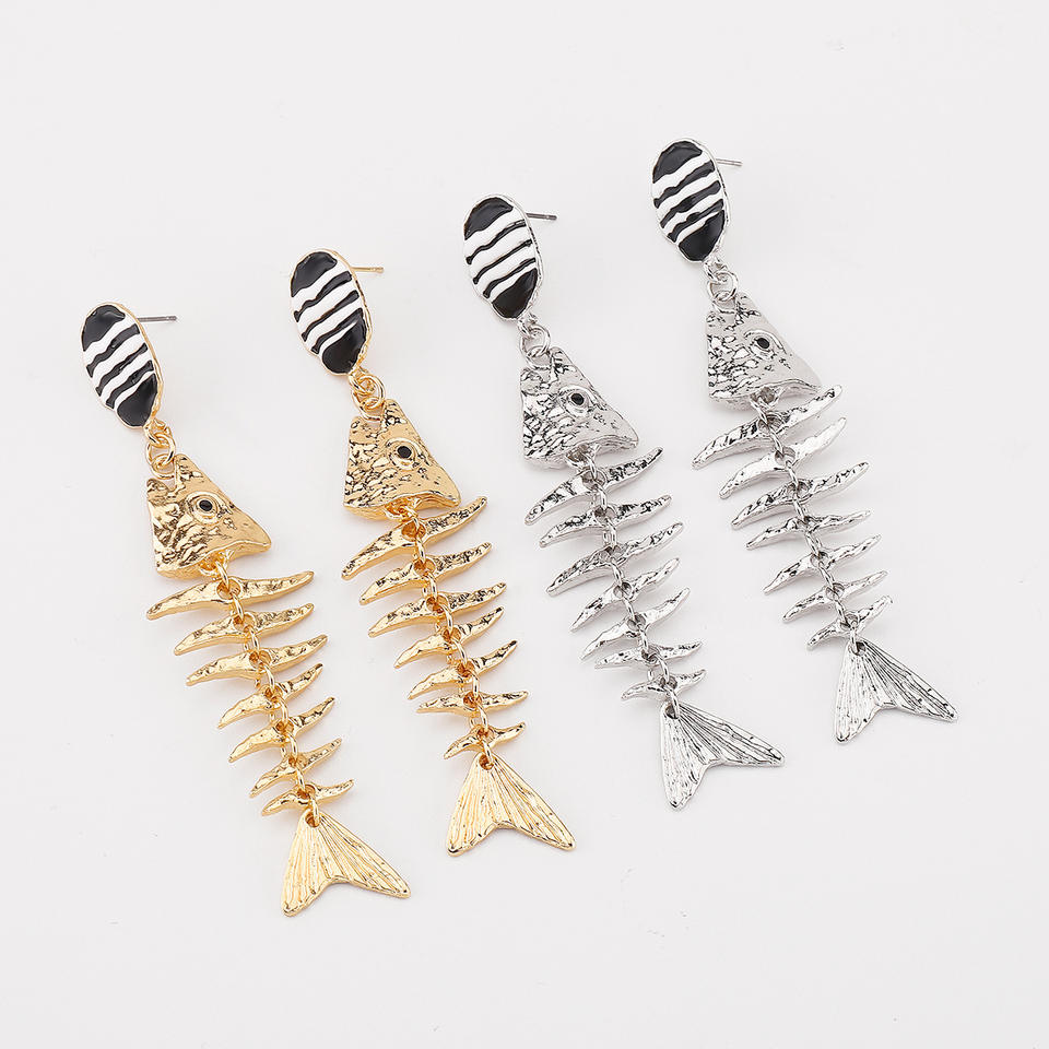 ต่างหูหยดน้ำทำจากโลหะผสมรูปปลากระดูกปลาคลาสสิกชุดมหาสมุทรสำหรับวันครบรอบ