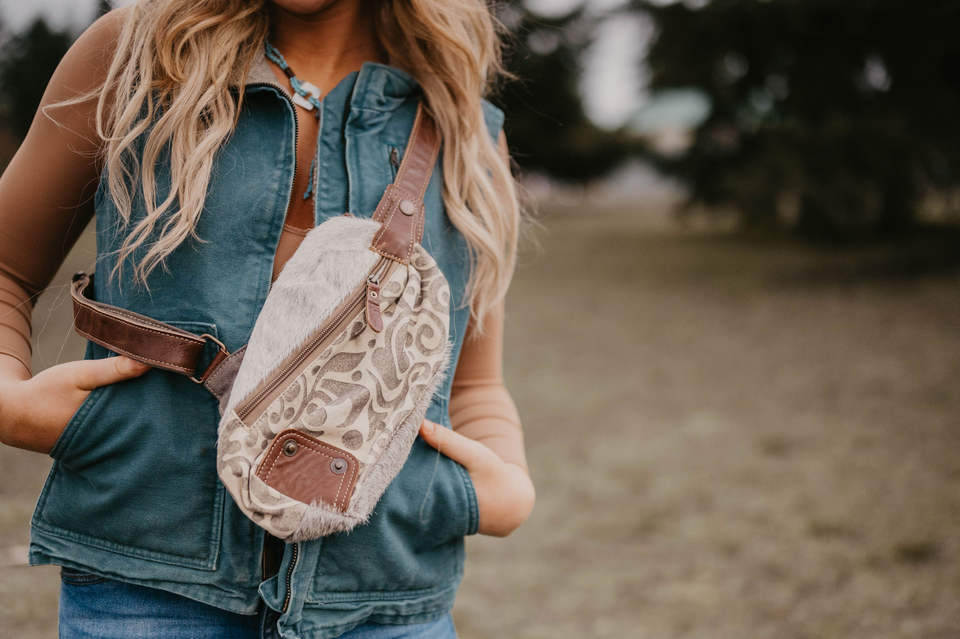 กระเป๋าคาดเอวแฟชั่นคลาสสิกกระเป๋าคาดเอวกระเป๋าคาดเอวกระเป๋าคาดผมหนังวัวสีดำและสีขาว