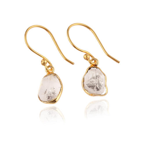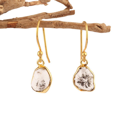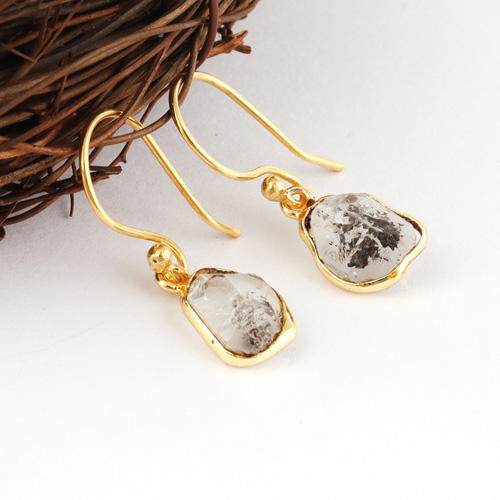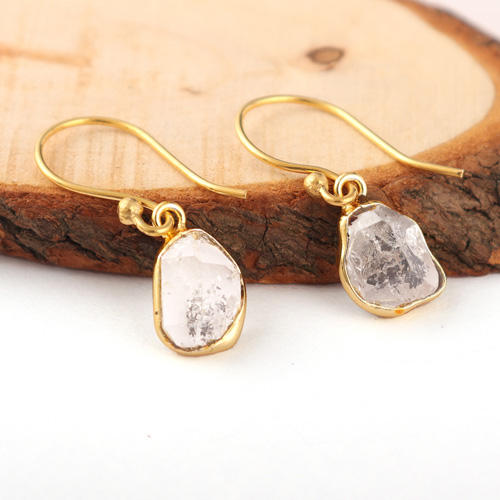 Classic Fashion Natural Raw Herkimer Diamond Gold Plated Drop Dangle Earrings Classy Bezel Setting Birthstone Hook Earrings Gift