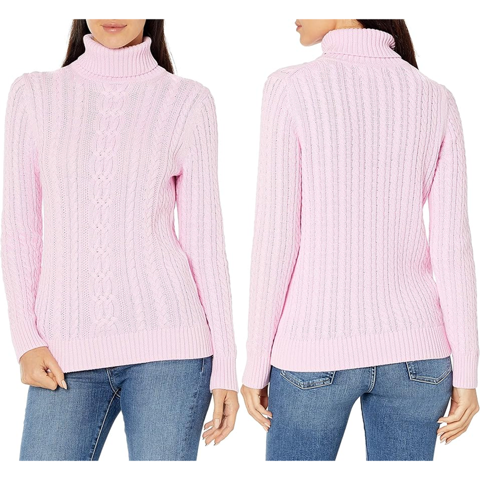 Classic-Fit Lightweight Long-Sleeve Top Quality Breathable 100% Cotton Women's Turtleneck Sweater Women's Lightweight Sweater