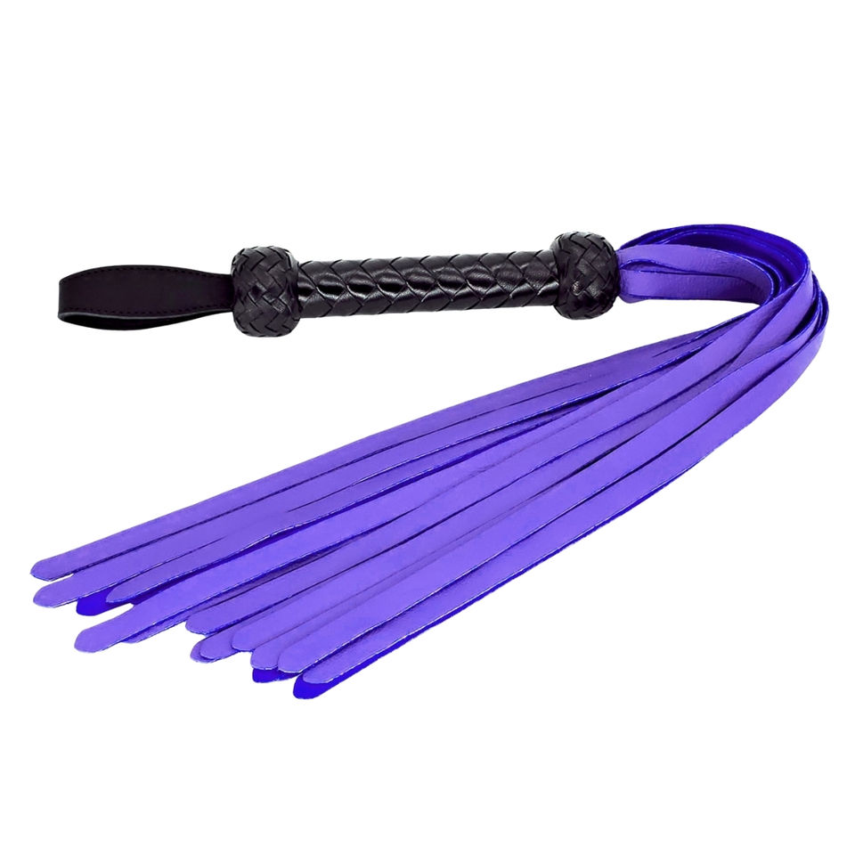 แส้หนังกลับสีดำแบบคลาสสิก พร้อมด้ามจับถักลายเชฟรอนสีดำและสีขาวสำหรับการเล่นแบบกระแทก