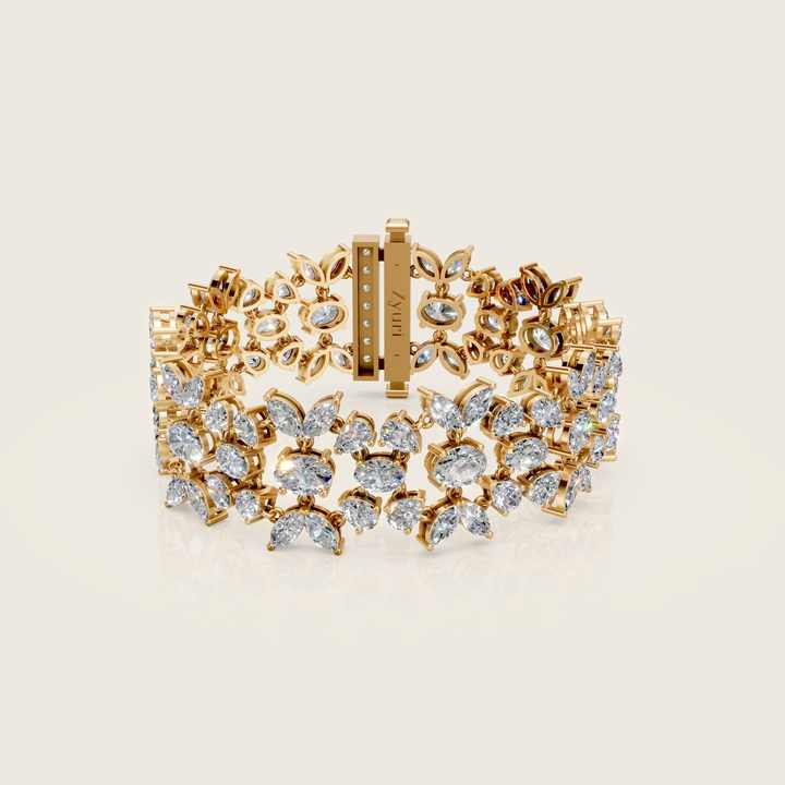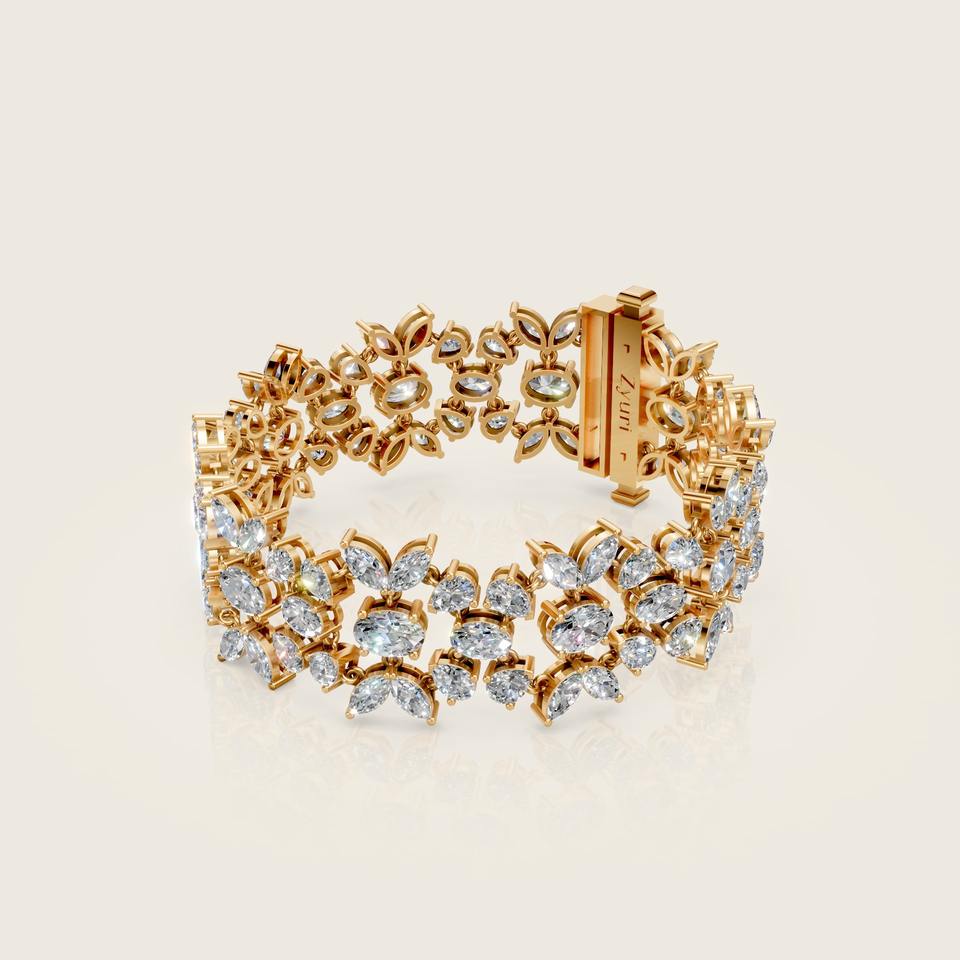 กำไลข้อมือเพชรลายดอกไม้คลาสสิก ทองคำ ประดับด้วยดีไซน์ใบไม้ สำหรับผู้หญิง เครื่องประดับชั้นดี