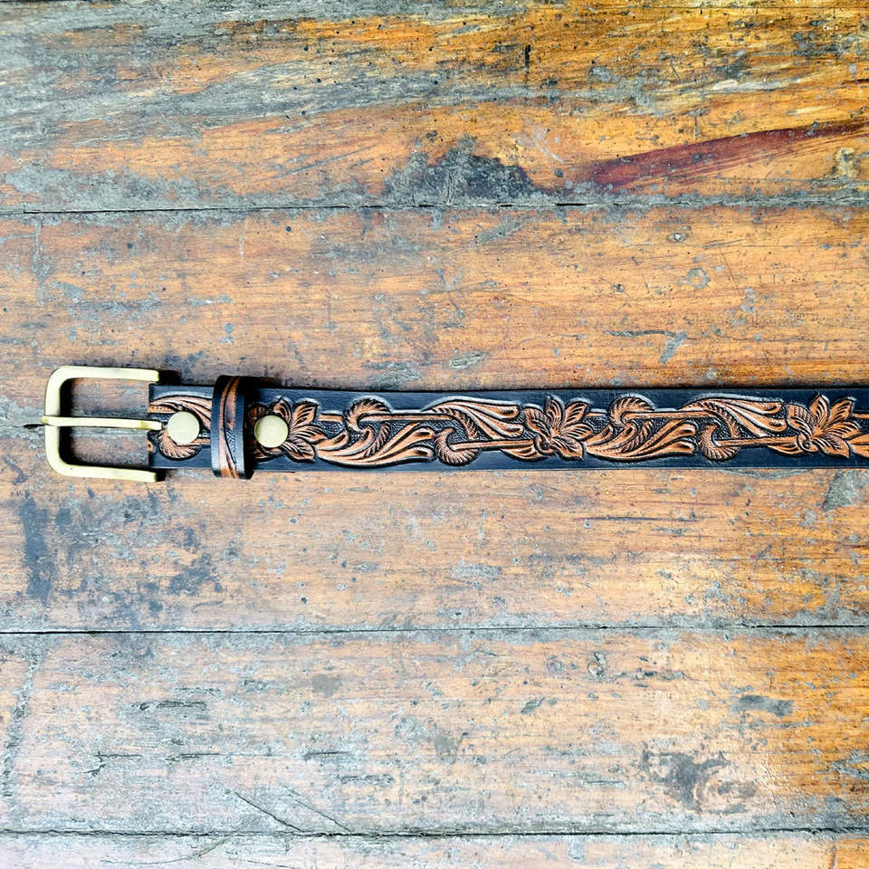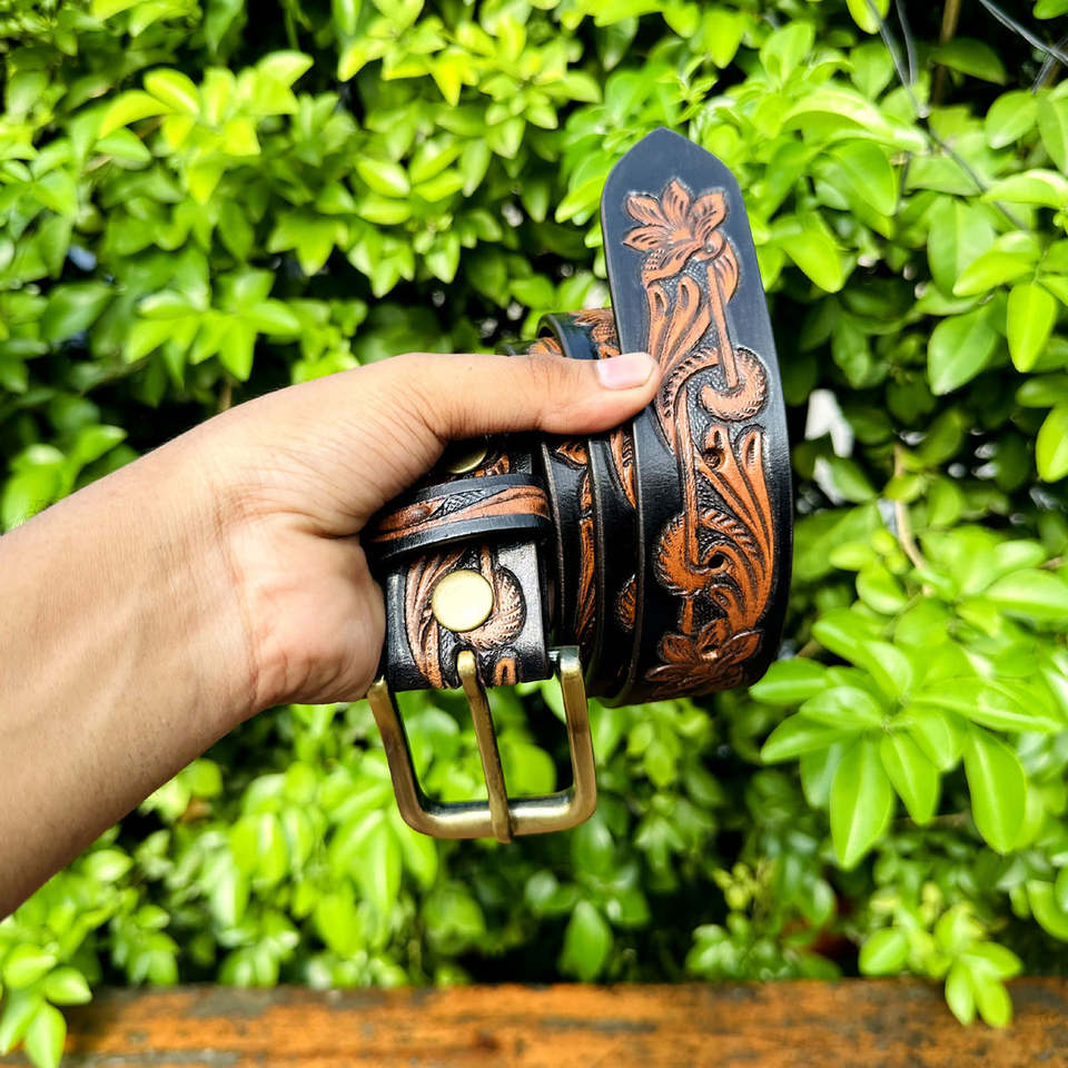 เข็มขัดหนังวัวแท้สไตล์ตะวันตกแบบคลาสสิค ลายดอกไม้ งานแฮนด์เมดจากอาร์เจนตินา เหมาะสำหรับคาวบอย ใส่ลำลอง ปรับแต่งได้ เหมาะสำหรับเป็นของขวัญ