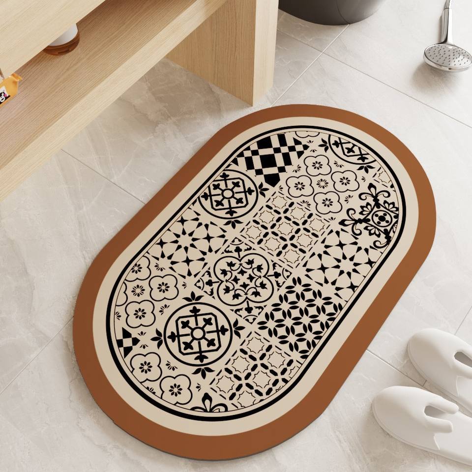 พรมเช็ดเท้ารูปวงรีลายดอกไม้คลาสสิก ใยโพลีเอสเตอร์ ดูดซับน้ำได้ดี กันลื่น สำหรับห้องน้ำ ห้องครัว ทางเข้าบ้าน