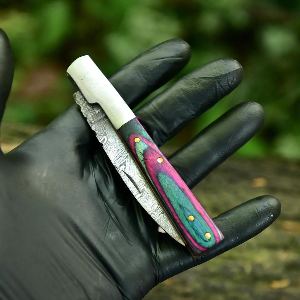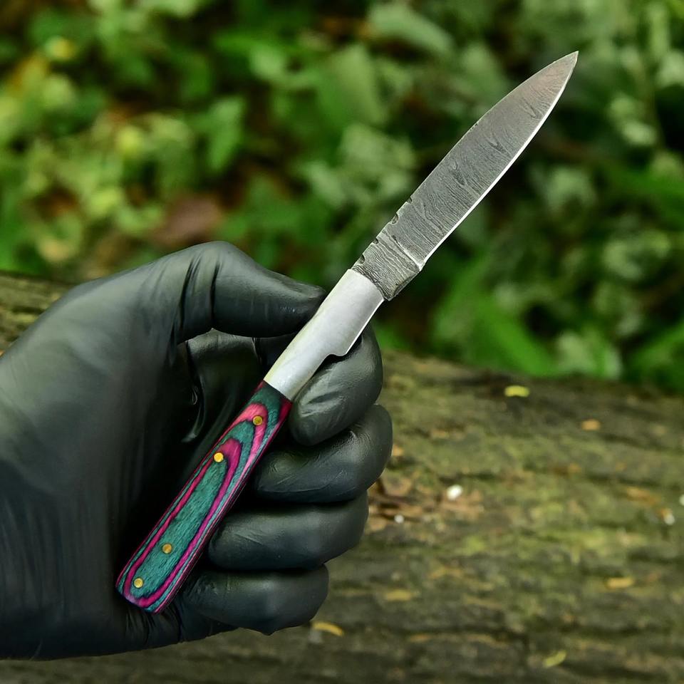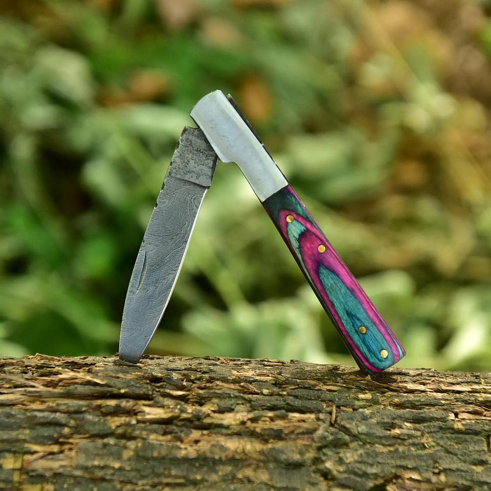 มีดพับคลาสสิก ด้ามไม้ พร้อมใบมีดเหล็กขัดเงา สำหรับใช้งานตัดในชีวิตประจำวัน