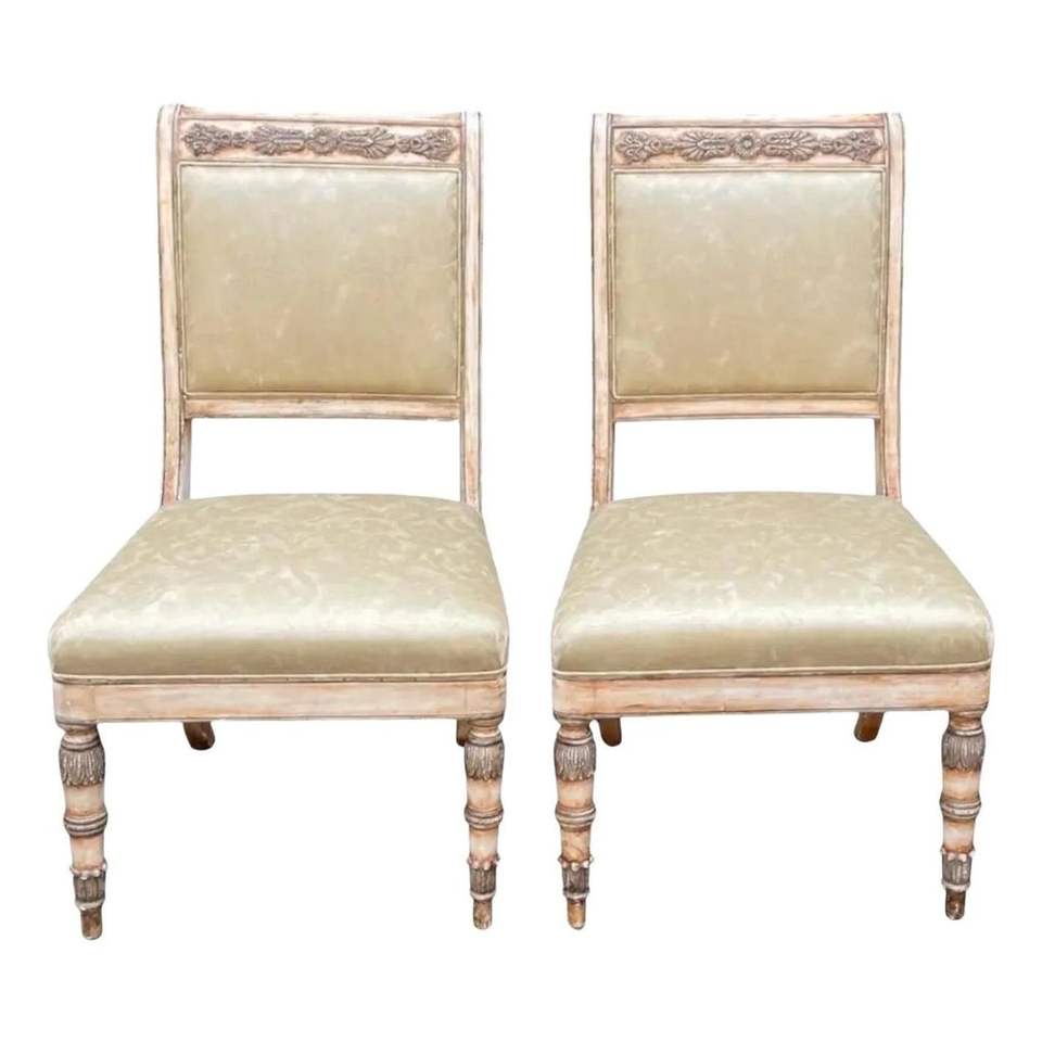 คำอธิบาย:เก้าอี้รับประทานอาหารสีเบจสไตล์ฝรั่งเศสคลาสสิกพร้อมกรอบไม้แกะสลัก
