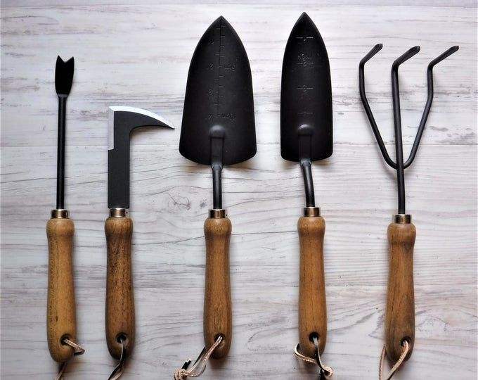 ชุดเครื่องมือทำสวนแบบคลาสสิกพร้อมด้ามไม้สำหรับขุด พรวนดิน และดูแลรักษาต้นไม้
